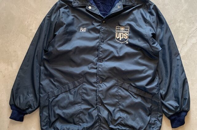 JACK CLOTHING SUPPLY【L】80s USA製 Hilton UPS 裏ボア ナイロンコーチジャケット ネイビー 紺無地■ビンテージ オールド アメリカ古着 企業