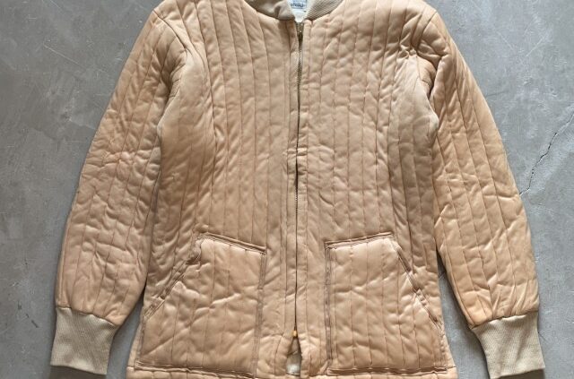 JACK CLOTHING SUPPLY【S】60s duofold キルティングジャケット ベージュ 無地■ビンテージ アメリカ古着 MA-1タイプ ジップアップ ライナー デュオフォールド