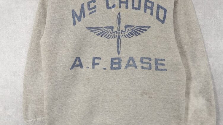 Feeet40〜50’s WINSTON “McCHORD A.F.BASE” 染み込みプリント 前Vスウェット S