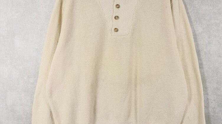 Feeet80〜90’s L.L.Bean USA製 ヘンリーネック コットンニットセーター L