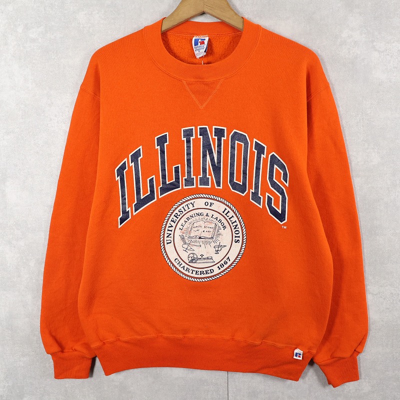 90’s RUSSELL ATHLETIC USA製 前V “UNIVERSITY OF ILLINOIS” プリントスウェット M