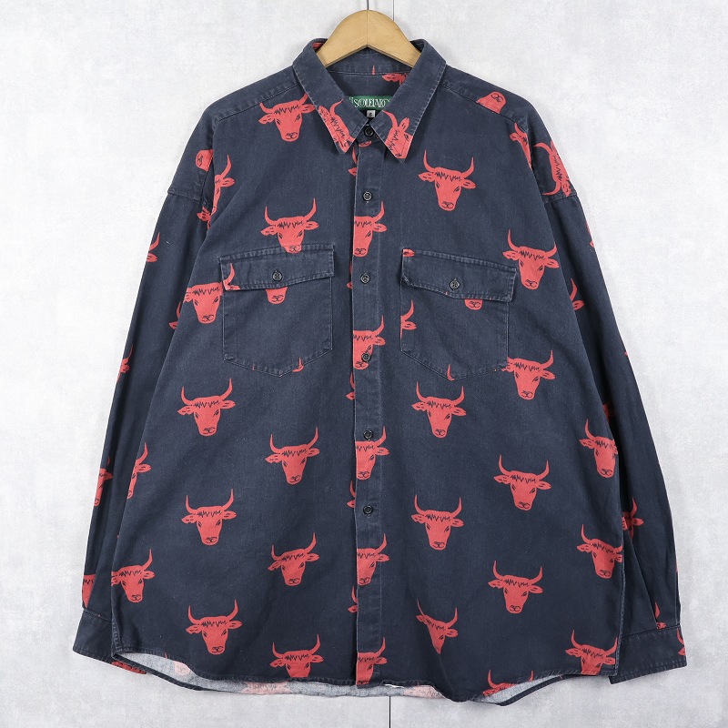 90’s〜 SOULEIADO FRANCE製 闘牛柄 コットンシャツ BLACK SIZE6