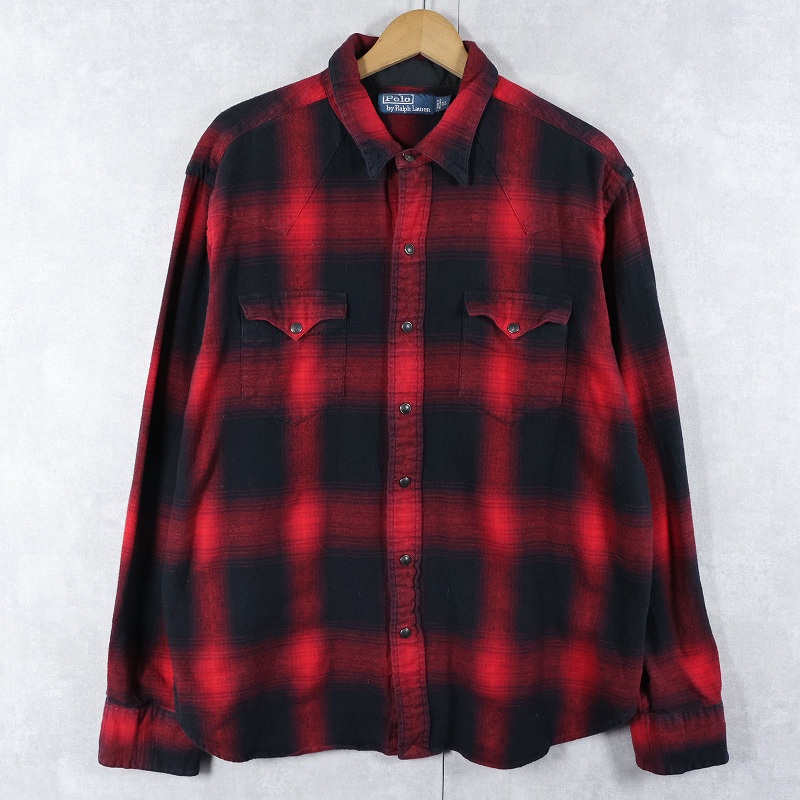 POLO Ralph Lauren オンブレーチェック柄 コットンウエスタンシャツ XL