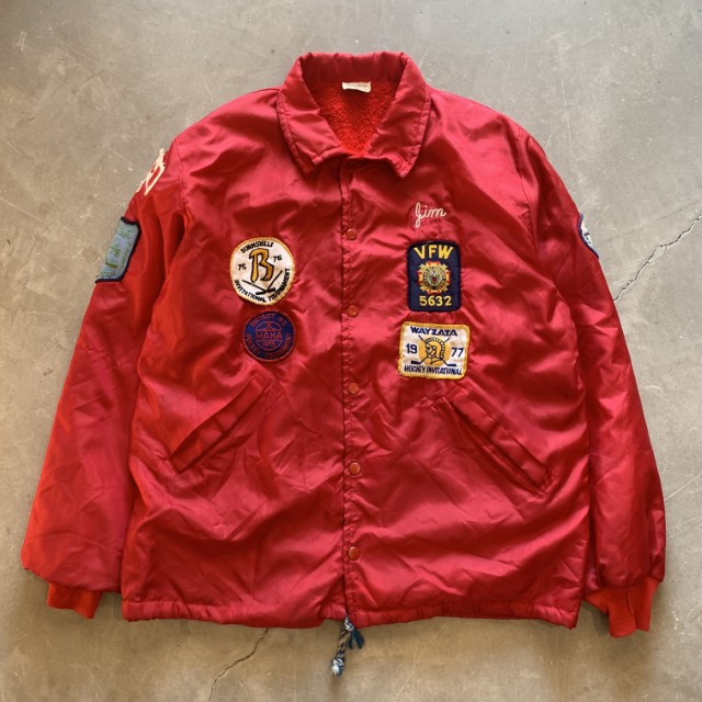 【L/XL相当】70s USA製 Birdie 裏ボア ワッペンカスタム ナイロンコーチジャケット 赤■ビンテージ オールド レトロ アメリカ古着