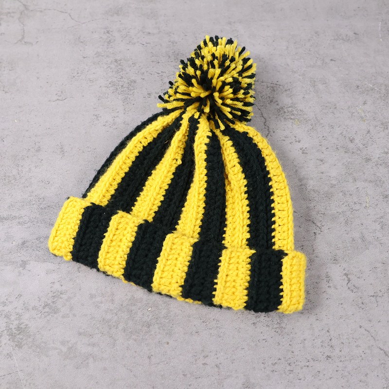 ストライプ柄 ポンポン付き ハンドニットキャップ