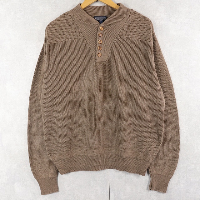 90’s LANDS’ END ヘンリーネック コットンニットセーター L
