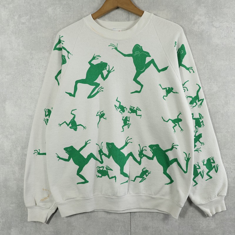 80〜90’s JERZEES USA製 “MICHIGAN RAG” カエル柄 プリントスウェット L