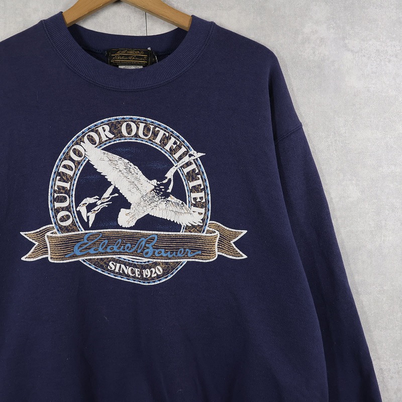 80〜90’s Eddie Bauer USA製 ロゴプリントスウェット NAVY XL
