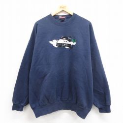XL★古着 長袖 スウェット メンズ 00年代 00s スノーモービル 刺繍 大きいサイズ クルーネック USA製 紺 ネイビー 【spe】 25oct02 中古 スエット トレーナー トップス
