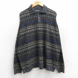 XL★古着 長袖 セーター メンズ 90年代 90s 総柄 襟付き 大きいサイズ コットン USA製 濃グレー他 25oct21 中古 ニット トップス