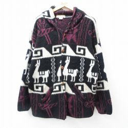 XL★古着 長袖 ニット カーディガン パーカー メンズ ラマ 手織り エクアドル製 黒他 ブラック 【spe】 25oct14 中古 トップス