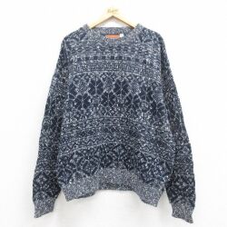XL★古着 長袖 ノルディック セーター メンズ 90年代 90s 雪柄 クルーネック USA製 紺 ネイビー 25oct08 中古 ニット トップス