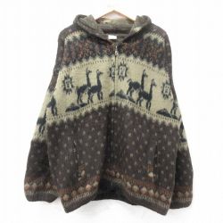 XL★古着 長袖 フルジップ ニット カーディガン パーカー メンズ ラム ウール こげ茶他 ブラウン 【spe】 25oct28 中古 トップス